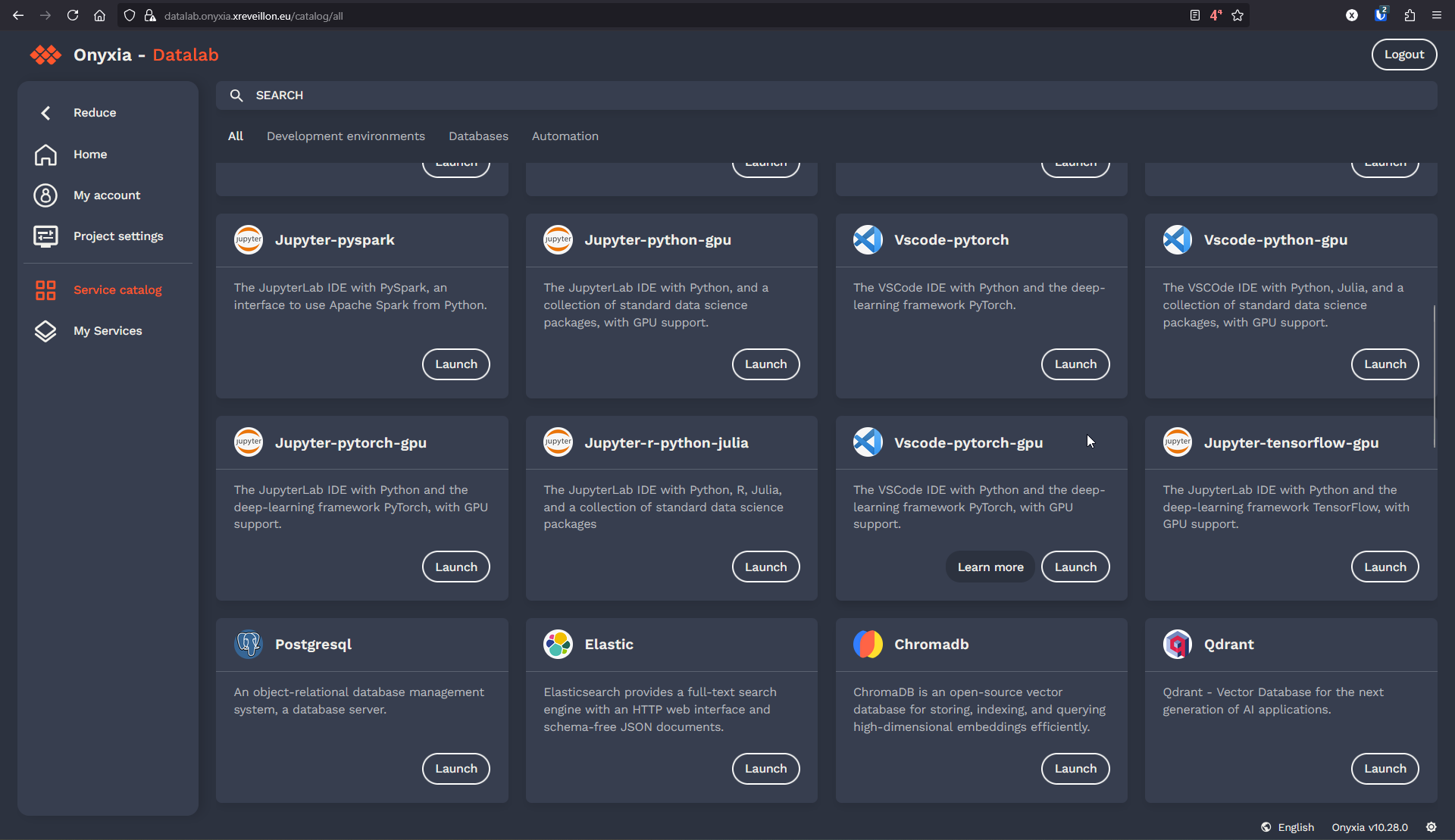 En se connectant à la plateforme, un utilisateur peut choisir dans une technothèque quel service il veut installer et utiliser. Par exemple, un JupyterLab avec des bibliothèques spécifiques pour le machine learning, ou un RStudio avec des packages pour l’analyse statistique. La plateforme gère automatiquement la création et la configuration de ces environnements, ce qui simplifie grandement le processus pour les utilisateurs.